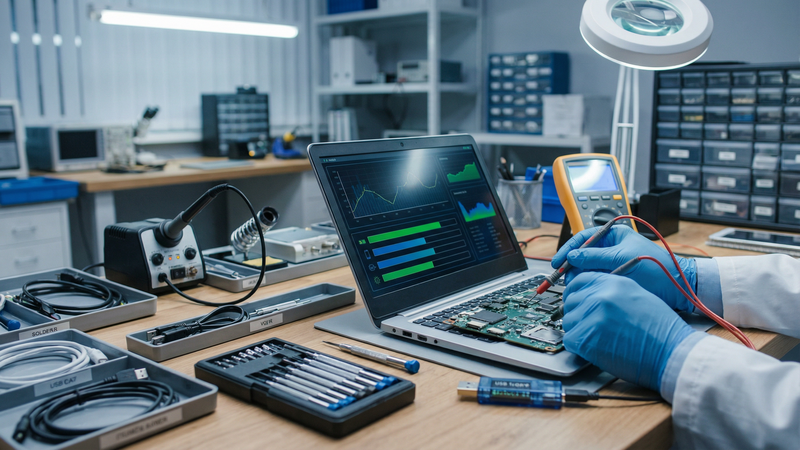 1.Quy trình test 30 bước khắt khe: Mọi linh kiện từ màn hình, phím, pin, cổng kết nối đến mainboard đều được kỹ thuật viên kiểm tra kỹ lưỡng.